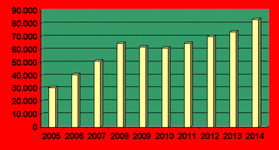 Se graf for omsætningsudvikling i halvårene 2005-2014