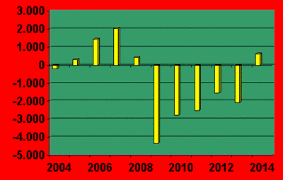 Se graf for udviklingen i resultat før skat i halvårene 2005-2014
